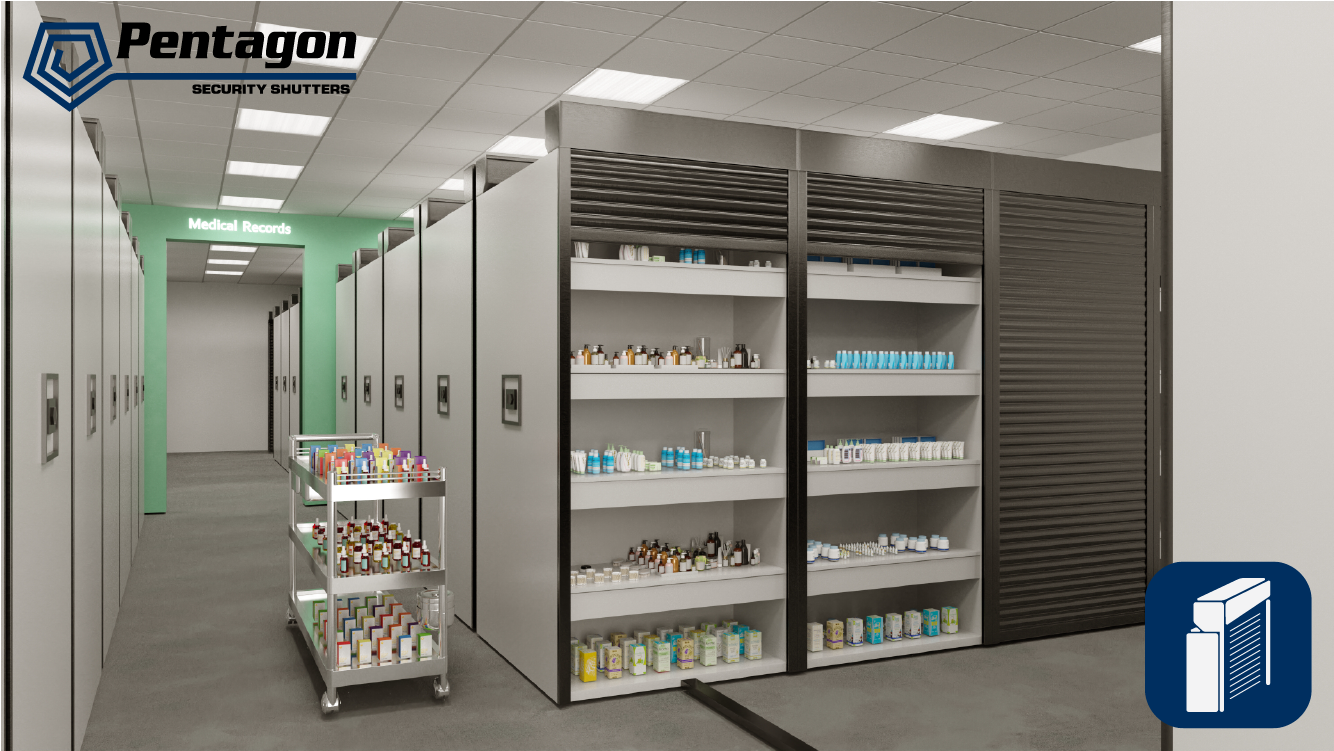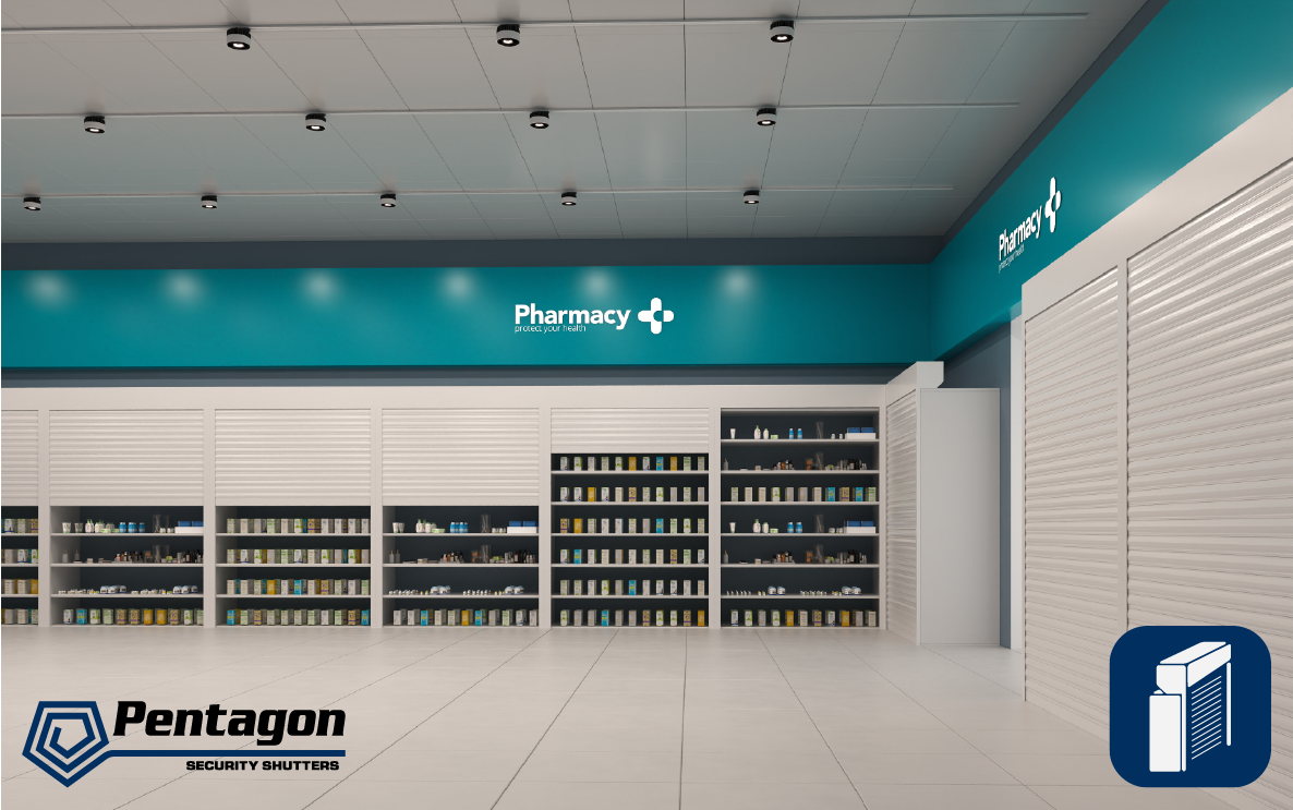 Enhance security at medical facilities and pharmacies with Pentagon’s durable aluminum shutters.